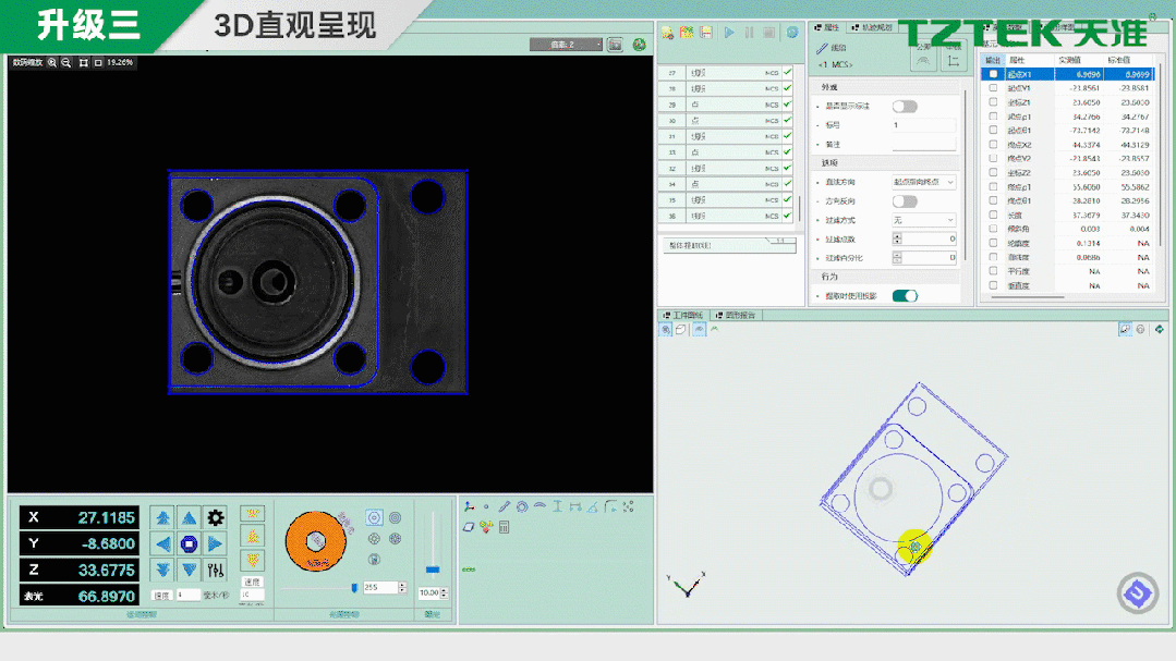 • 真实渲染基于CAD数据还原工件立体轮廓,支持360°自由旋转与缩放